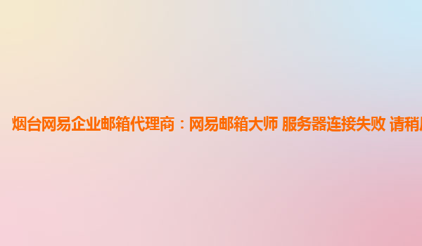 2024-02-11烟台网易企业邮箱代理商:网易邮箱大师 服务器连接失败请稍后重试 作为烟台地区的网易企业邮箱代理商之一,我们深知在日常办公中稳定、高效的电子邮件服务对于企业的重要性。然而,有时候我们可能会遇到服务...