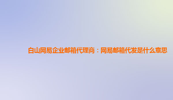 2024-02-10网易企业邮箱代发的意义及使用感受 作为白山网易企业邮箱代理商,我们来解答一个常见问题:什么是网易邮箱代发?同时,我们将分享使用网易企业邮箱后的优势和感受。 什么是网易邮箱代发? 网易邮箱代发...