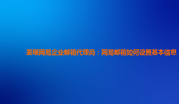 射阳网易企业邮箱代理商:163网易邮箱设置在哪 作为射阳地区的网易企业邮箱代理商,我们为各类企业提供了便捷、高效的企业邮箱解决方案。在使用163网易企业邮箱后,我们获得了许多优势,并感受到了明显的改变。 一...