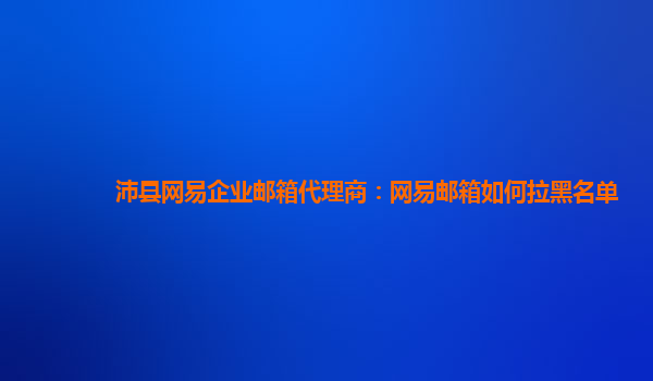 2024-02-10沛县网易企业邮箱代理商:网易邮箱如何拉黑名单 1.网易企业邮箱的优势 网易企业邮箱是一款功能强大、稳定可靠的企业邮箱服务。它提供了丰富的邮件管理和安全防护功能,适用于各类企业的日常通讯和业务运营。 1.1...