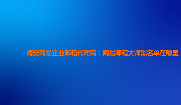 2024-02-10海安网易企业邮箱代理商:网易邮箱大师黑名单在哪里 网易企业邮箱的优势 作为一款专业的企业邮箱解决方案,网易企业邮箱拥有以下优势: 安全可靠:网易企业邮箱采用先进的加密技术,保障邮件传输的安全性和稳定...