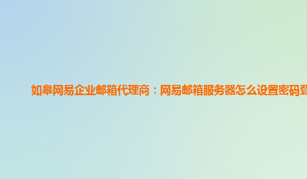 2024-02-10网易企业邮箱代理商:网易邮箱服务器怎么设置密码登录 作为如皋地区的网易企业邮箱代理商,我们将为您介绍如何设置密码登录网易邮箱服务器,并且希望通过本文向大家展示网易企业邮箱的优势。 一、密码登录网易...