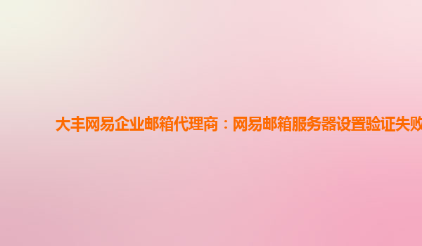 2024-02-10大丰网易企业邮箱代理商:网易邮箱服务器设置验证失败 在当前数字化时代,电子邮件已经成为企业日常沟通和业务推广的重要工具之一。网易企业邮箱作为邮件服务领域的佼佼者,在市场上拥有着广泛的用户群体。然而,有...