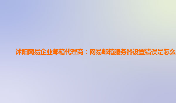 2024-02-10网易企业邮箱代理商:网易邮箱服务器设置错误是怎么回事 近年来,随着企业邮件通讯的普及和需求的增加,网易企业邮箱成为了许多企业首选的邮件解决方案。然而,有时候企业在使用网易企业邮箱过程中可能会遇到服务器...