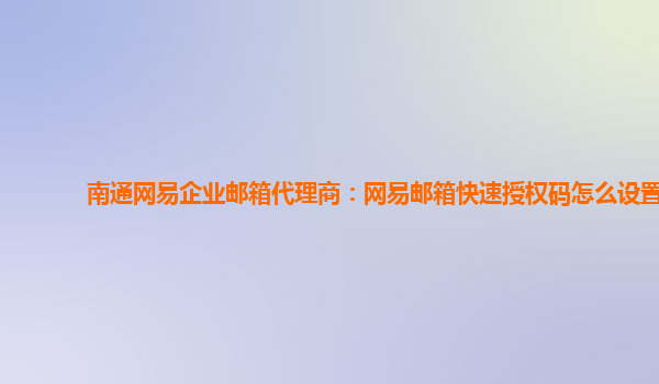 2024-02-10南通网易企业邮箱代理商:网易邮箱快速授权码怎么设置 网易企业邮箱是一款专为企业打造的高效、安全、稳定的企业邮箱服务。作为南通网易企业邮箱代理商,我们将为您介绍如何设置网易邮箱快速授权码,并详细解答...