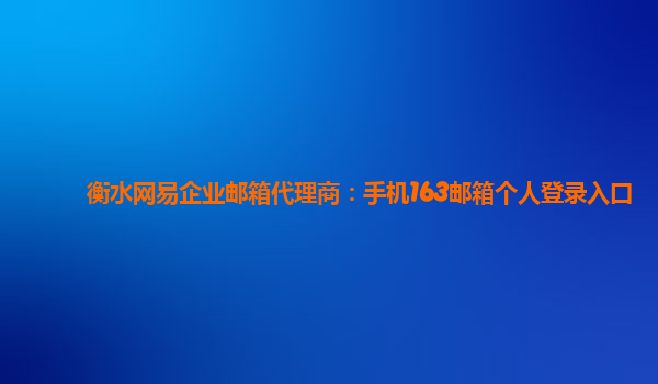 2024-02-09衡水网易企业邮箱代理商:手机163邮箱个人登录入口 网易企业邮箱优势 1.安全可靠:网易企业邮箱采用高强度的加密技术,确保邮件内容的安全性和隐私保护。 2.大容量:每个用户享有充足的存储空间,可以方便地保存...