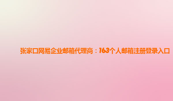 2024-02-09张家口网易企业邮箱代理商:163个人邮箱注册登录入口 作为张家口地区的网易企业邮箱代理商,我们提供了便捷的163个人邮箱注册登录入口。在现代社会,个人邮箱已经成为了人们工作和生活中必不可少的工具,而网易企业...