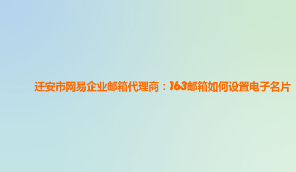 2024-02-09迁安市网易企业邮箱代理商:163邮箱如何设置电子名片 1.什么是网易企业邮箱 网易企业邮箱是一款专注于企业级邮件解决方案的产品,提供了强大的安全性和稳定性。它能够满足企业客户对邮件通信的高要求,拥有多...