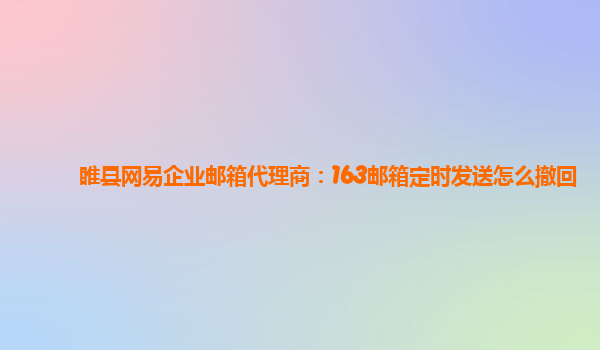 2024-02-09睢县网易企业邮箱代理商:163邮箱定时发送撤回操作 作为睢县网易企业邮箱的代理商,我们为您介绍一下如何在163邮箱中进行定时发送撤回操作。163企业邮箱是一款功能强大、稳定可靠的企业邮件服务,拥有许多优势和...