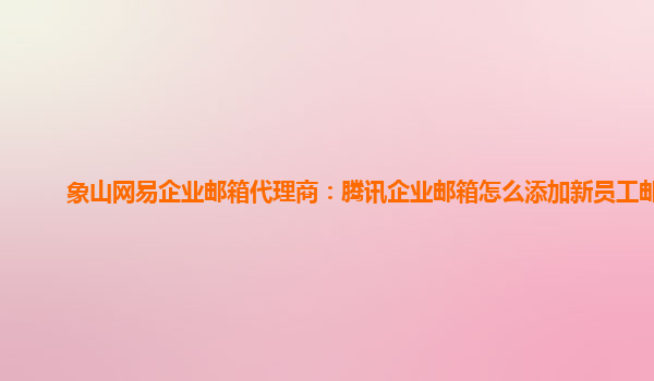 2024-02-06腾讯企业邮箱添加新员工邮箱的步骤 腾讯企业邮箱是一款功能强大且易于管理的企业邮箱服务。它能够帮助企业高效地管理员工的邮件通信,保障信息的安全性和稳定性。在以下文中,我们将向您介绍腾讯企业邮箱如何添加新...