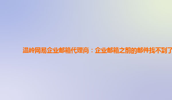 2024-02-06慈溪网易企业邮箱代理商:企业邮箱突然没了 引言 企业邮箱在现代商业环境中扮演着关键的角色。然而,当企业邮箱突然无法使用时,可能会给公司运营带来困扰。本文将探讨慈溪网易企业邮箱代理商如何可以解决这个问题...