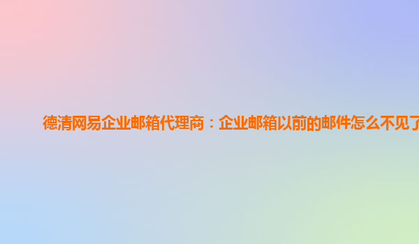 2024-02-06海宁网易企业邮箱代理商:企业邮箱以前的邮件怎么不见了呢 引言 企业邮箱是一种专门为企业提供的电子邮件服务,可以提高企业内部沟通、协作的效率。然而,有时候我们可能会遇到企业邮箱中以前的邮件突然不见了的情...