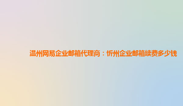 2024-02-06温州网易企业邮箱代理商:忻州企业邮箱续费多少钱温州网易企业邮箱代理商简介温州网易企业邮箱代理商是一家专业代理网易企业邮箱服务的公司,为企业提供高效、稳定和安全的企业邮箱解决方案。作为网易企业邮箱合作伙...