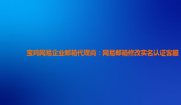2024-06-12宝鸡网易企业邮箱代理商:网易邮箱修改实名认证客服 作为宝鸡地区的网易企业邮箱代理商,我们致力于为企业提供全方位的企业邮箱服务,包括网易邮箱修改实名认证客服。在与我们合作使用网易企业邮箱后,许多企业...