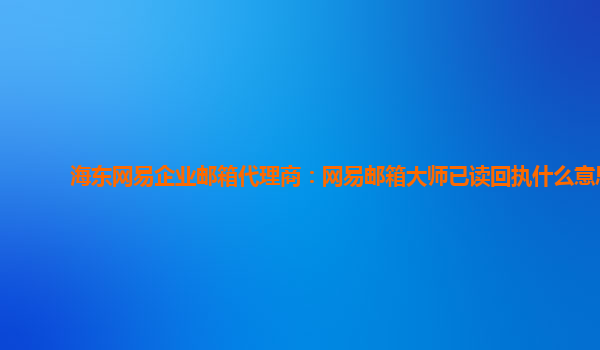 2024-06-12海东网易企业邮箱代理商:网易邮箱大师已读回执什么意思 作为网易企业邮箱的代理商,我们了解很多用户对于邮件回执的功能有疑惑,尤其是“已读回执”功能。在这篇文章中,我们将详细解释网易邮箱大师已读回执的意义...