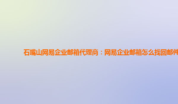 2024-06-12石嘴山网易企业邮箱代理商:网易企业邮箱怎么找回邮件 使用网易企业邮箱作为企业邮件系统,不仅可以提高邮件的安全性和专业性,还能更好地管理企业内部的沟通和合作。但是,在日常使用中难免会遇到误删重要邮件或...