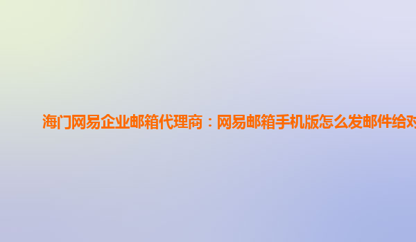 2024-06-12海门网易企业邮箱代理商:网易邮箱手机版怎么发邮件给对方 作为海门地区的网易企业邮箱代理商,我们将为您介绍如何在网易邮箱手机版上给对方发送邮件。网易企业邮箱是一款功能强大、稳定可靠的企业邮箱服务,不仅支...