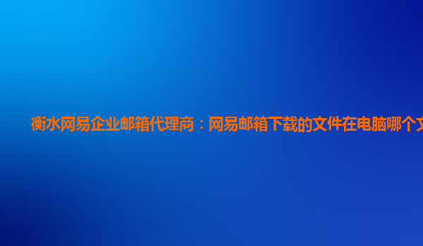 2024-06-12承德网易企业邮箱代理商:网易邮箱下载的文件在哪个文件夹找 在使用网易企业邮箱的过程中,经常会收到各种附件文件。当需要下载这些附件文件时,我们常常会遇到一个问题:下载的文件存放在哪个文件夹中? 网易企业...