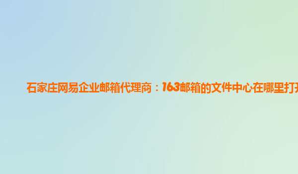2024-06-12保定网易企业邮箱代理商:网易邮箱163里面的文件中心在哪里 作为一家使用了网易企业邮箱的企业,我们深刻感受到了这种高效、安全的办公方式带来的便利和提升。在网易企业邮箱163这个平台上,有一个非常实用的工...