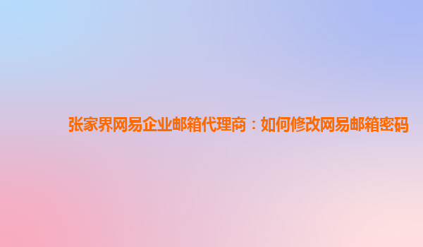 2024-06-12如何修改网易邮箱密码 作为张家界网易企业邮箱代理商,我们了解到企业邮箱安全对于企业来说是非常重要的。其中一个重要的安全措施就是定期更改邮箱密码。下面我们将介绍如何在网易企业邮箱中修改密码。 步骤一:登...