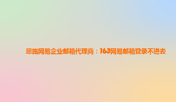 2024-06-12恩施网易企业邮箱代理商:163网易邮箱登录不进去 最近有很多用户反映在使用163网易企业邮箱时登录不进去,这可能是由于网络问题或者账号设置有误所致。如果您遇到这种情况,建议您联系恩施网易企业邮箱代理商进行咨...
