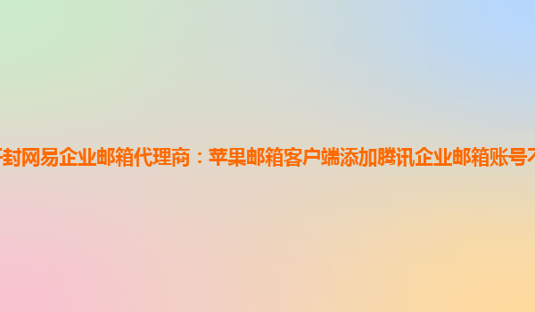 2024-06-12网易企业邮箱代理商:苹果邮箱客户端添加腾讯企业邮箱账号不支持密码认证 随着互联网的快速发展,企业邮箱已经成为企业办公必备的工具之一。而在选择企业邮箱服务商时,网易企业邮箱和网易企业邮箱代理商都是业界知...
