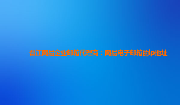 2024-06-12晋江网易企业邮箱代理商:网易电子邮箱的ip地址 网易企业邮箱是一款专为企业定制的电子邮箱服务,为企业提供了稳定、安全、高效的邮件通讯解决方案。作为晋江网易企业邮箱代理商,我们将为您介绍网易企业邮箱的ip地...