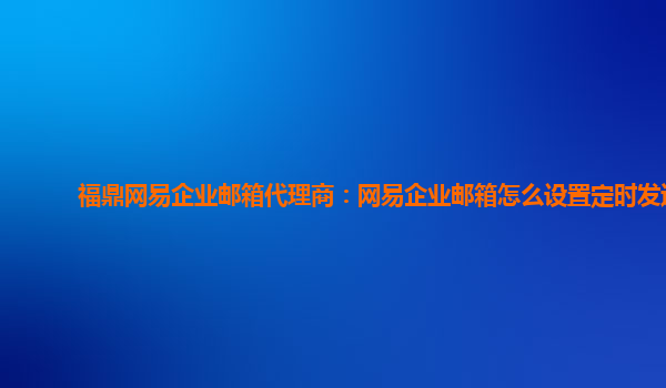 2024-06-12福鼎网易企业邮箱代理商:网易企业邮箱怎么设置定时发送 一、网易企业邮箱优势 1.稳定可靠:网易企业邮箱作为国内知名的企业邮箱服务提供商,拥有稳定可靠的服务器和技术支持团队,确保用户的邮件服务始终正常运行...