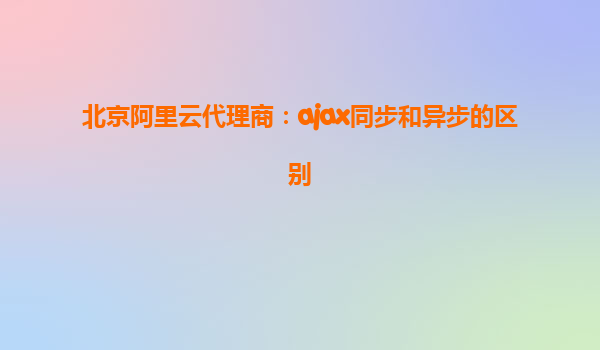 北京阿里云代理商:Ajax同步和异步的区别