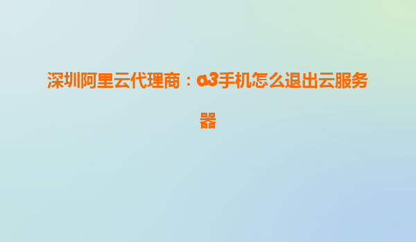 深圳阿里云代理商:a3手机怎么退出云服务器——深度解析与安全防护方案