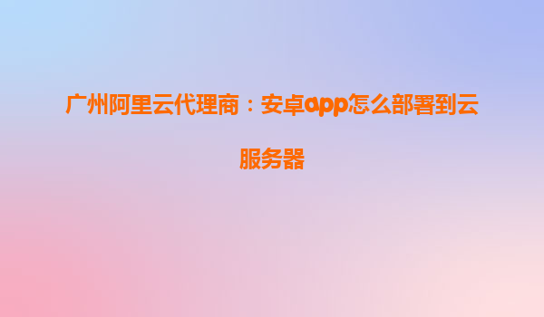 广州阿里云代理商:安卓app如何部署到云服务器