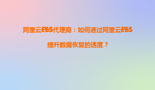 阿里云EBS代理商:如何通过阿里云EBS提升数据恢复的速度?