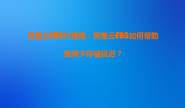 阿里云EBS代理商:阿里云EBS如何帮助我减少存储延迟?