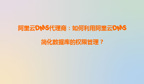 阿里云DMS代理商:如何利用阿里云DMS简化数据库的权限管理?