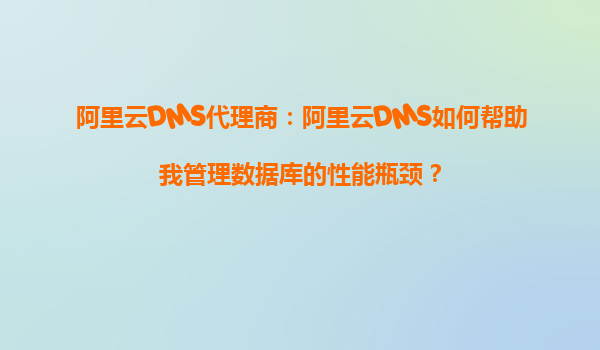 阿里云DMS代理商:阿里云DMS如何帮助我管理数据库的性能瓶颈?