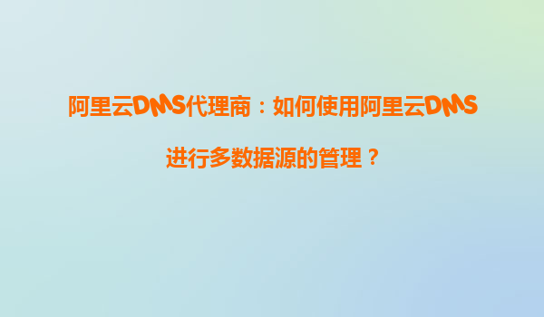 阿里云DMS代理商:如何使用阿里云DMS进行多数据源的管理?