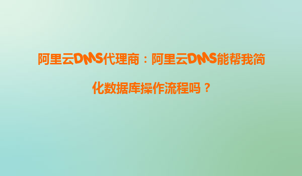 阿里云DMS代理商:阿里云DMS能帮我简化数据库操作流程吗?