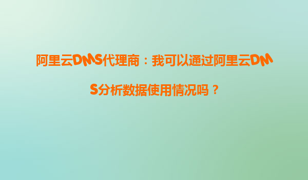 阿里云DMS代理商:我可以通过阿里云DMS分析数据使用情况吗?