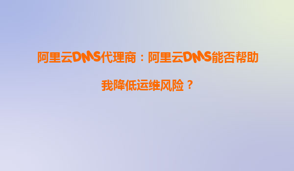 阿里云DMS代理商:阿里云DMS能否帮助我降低运维风险?