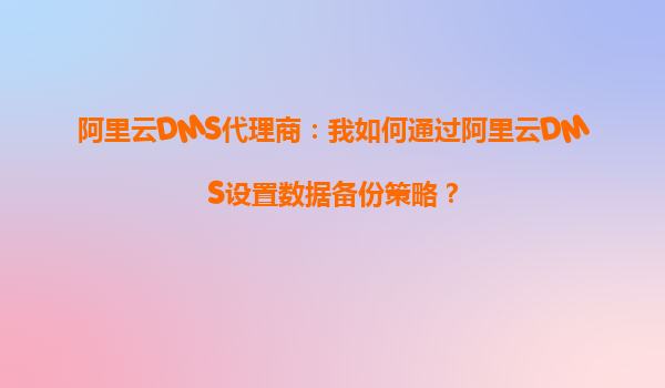 阿里云DMS代理商:我如何通过阿里云DMS设置数据备份策略?