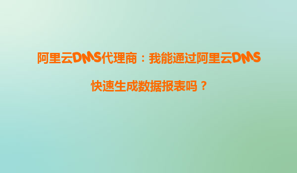 阿里云DMS代理商:我能通过阿里云DMS快速生成数据报表吗?