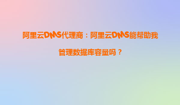 阿里云DMS代理商:阿里云DMS能帮助我管理数据库容量吗?