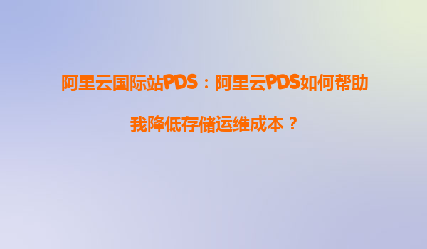 阿里云国际站PDS:阿里云PDS如何帮助我降低存储运维成本?