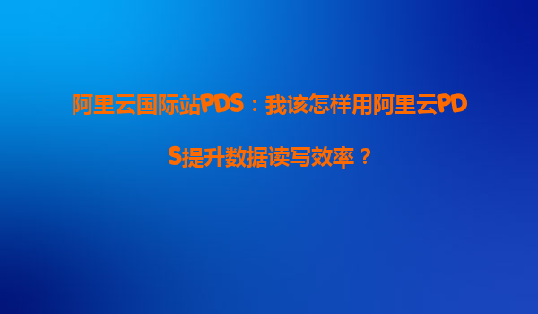 阿里云国际站PDS:如何利用阿里云PDS提升数据读写效率