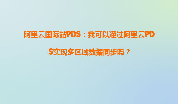 阿里云国际站PDS:我可以通过阿里云PDS实现多区域数据同步吗?