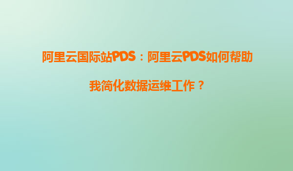 阿里云国际站PDS:阿里云PDS如何帮助我简化数据运维工作?
