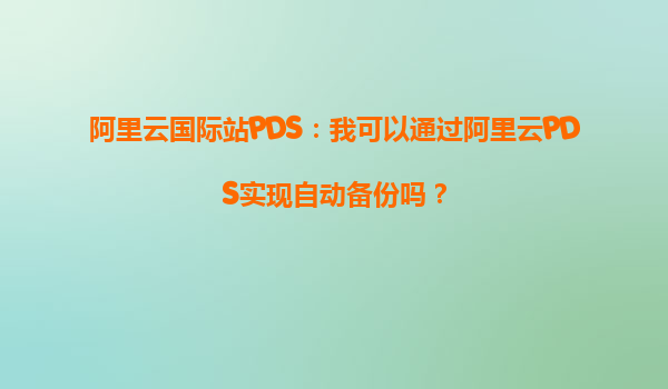 阿里云国际站PDS:我可以通过阿里云PDS实现自动备份吗?