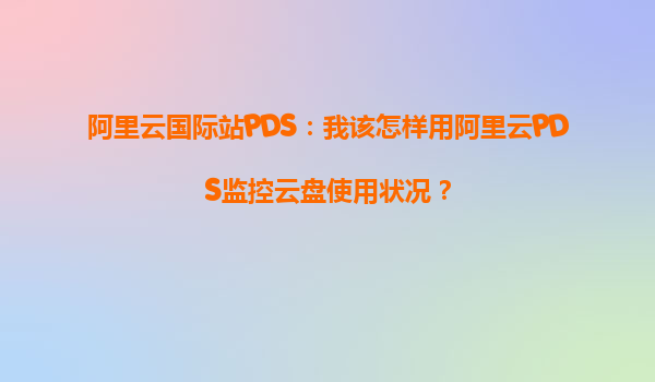 阿里云国际站PDS:我该怎样用阿里云PDS监控云盘 XL