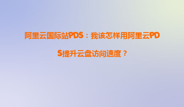 阿里云国际站PDS:如何利用阿里云PDS提升云盘访问速度?