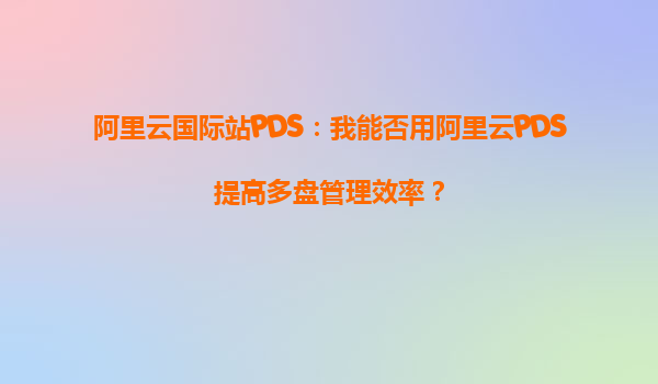 阿里云国际站PDS:我能否用阿里云PDS提高多盘管理效率?